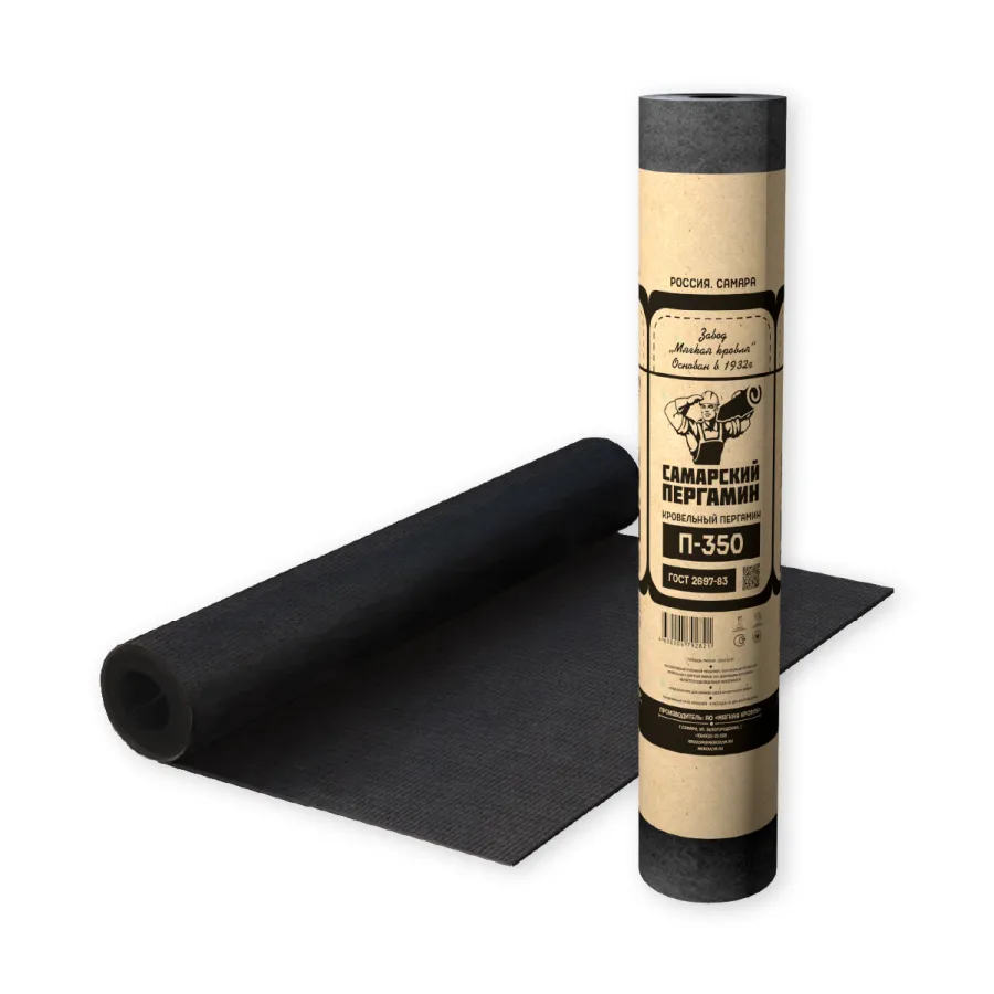 Пергамин П-350 ГОСТ 2697-83 - беспокровный рулонный подкладочный материал.