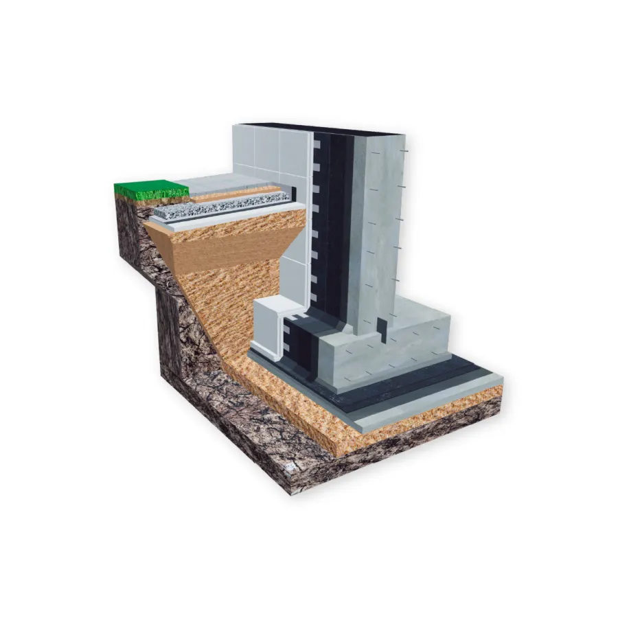 Система используется для гидроизоляции фундаментов зданий и сооружений с техническим подвальным этажом, расположенных на песчаных грунтах с низким уровнем грунтовых вод. Уровень грунтовых вод определяется в ходе инженерных изысканий и учитывается при разработке проекта.