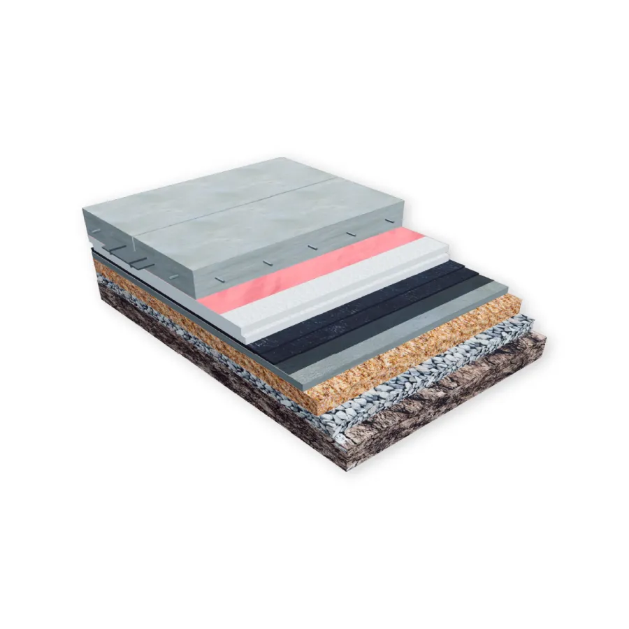 Система гидроизоляции «пола по грунту» с двухслойной битумно-полимерной мембраной и утеплением.