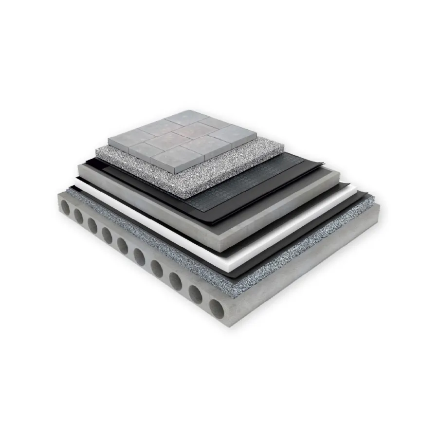 Система эксплуатируемой кровли под пешеходную нагрузку с утеплением пенополистирольными плитами по железобетонному основанию. Предназначена для эффективного использования площади кровли с возможностью организации зон отдыха и прогулок. Отличается высокой стойкостью к пешеходным нагрузкам и механическим воздействиям.