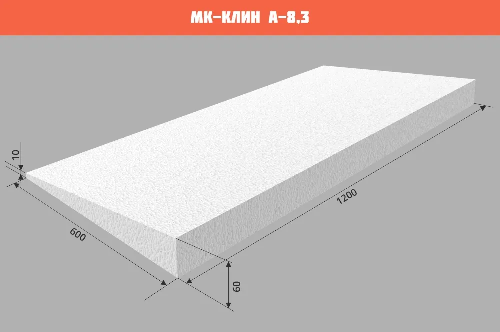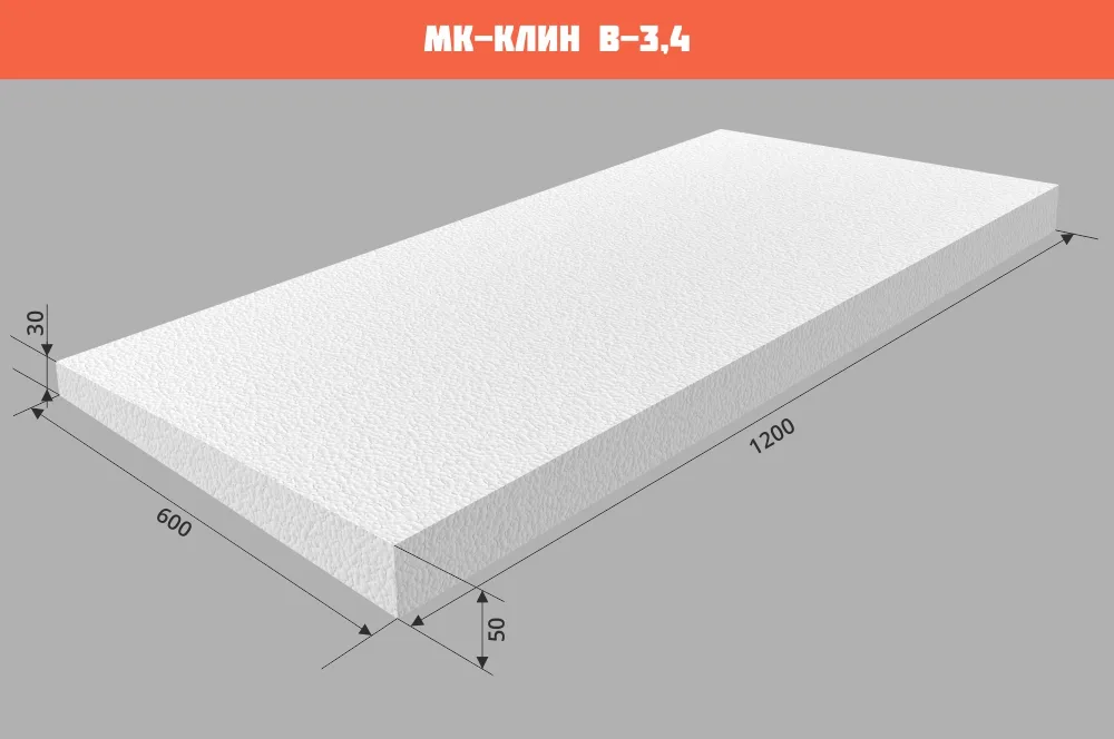 Уклонообразующие элементы изготавливаются из пенополистирола марки ППС 20 Р-А по ГОСТ 1588-2014 с прочностью на сжатие при 10% линейной деформации не менее 120 кПа. По сравнению с классическими способами разуклонки использование МК-КЛИН позволяет производить монтажные работы без применения «мокрых процессов» в устройстве кровли и облегчает нагрузку на перекрытия. Также существенно сокращает время выполнения работ.