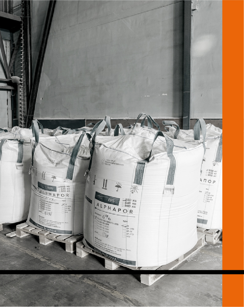 В качестве сырья используется вспенивающийся полистирол марки ALPHAPOR от компании «Сибур». ALPHAPOR - это единственный на сегодняшний день российский полистирол, соответствующий европейским стандартам по гранулометрическому составу, плотности и физико-механическим характеристикам. ALPHAPOR - экологически-чистое сырье, которое на 98% состоит из воздуха. Безопасность подтверждается его использованием при производстве пищевой упаковки.